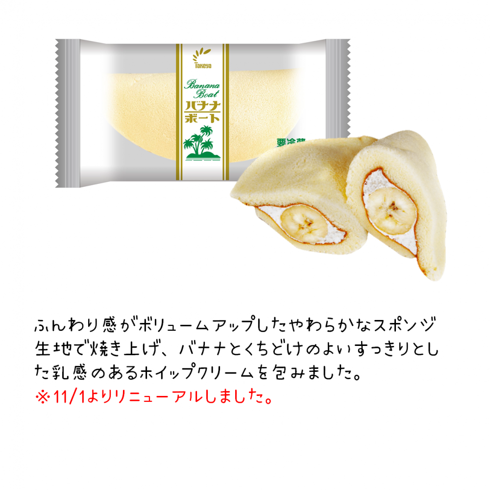 ふんわりとした生地でホイップクリームとバナナを包みました。秋田のソウルフードの1つと言えば「バナナボート」です。ぜひお試しください。プレゼント向けとしてもオススメです。